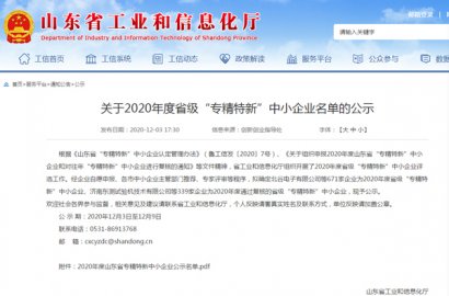 根據(jù)《山東省“專精特新”中小企業(yè)認(rèn)定管理辦法》(魯工信發(fā)〔2020〕7號(hào))、《關(guān)于組織申報(bào)2020年度山東省“專精特新”中小企業(yè)和對(duì)往年“專精特新”中小企業(yè)進(jìn)行復(fù)核的通知》等文件精神,省工業(yè)和信息化廳組織開(kāi)展了2020年度省級(jí)“專精特新”中小企業(yè)評(píng)選工作。經(jīng)主管部門推薦、專家評(píng)審等程序,確定我公司為2020年度省級(jí)“專精特新”中小企業(yè)。