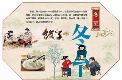 二十四節(jié)氣中的第二十二個(gè)節(jié)氣。進(jìn)入冬至節(jié)氣這一天,太陽(yáng)直射南回歸線,北半球白天最短,黑夜最長(zhǎng),數(shù)九寒天從此開(kāi)始。